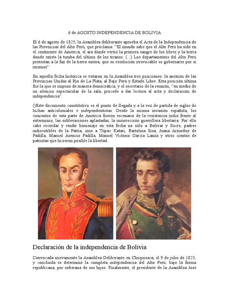 6 de agosto independencia de bolivia 6 de agosto. Check spelling or type a new query.
